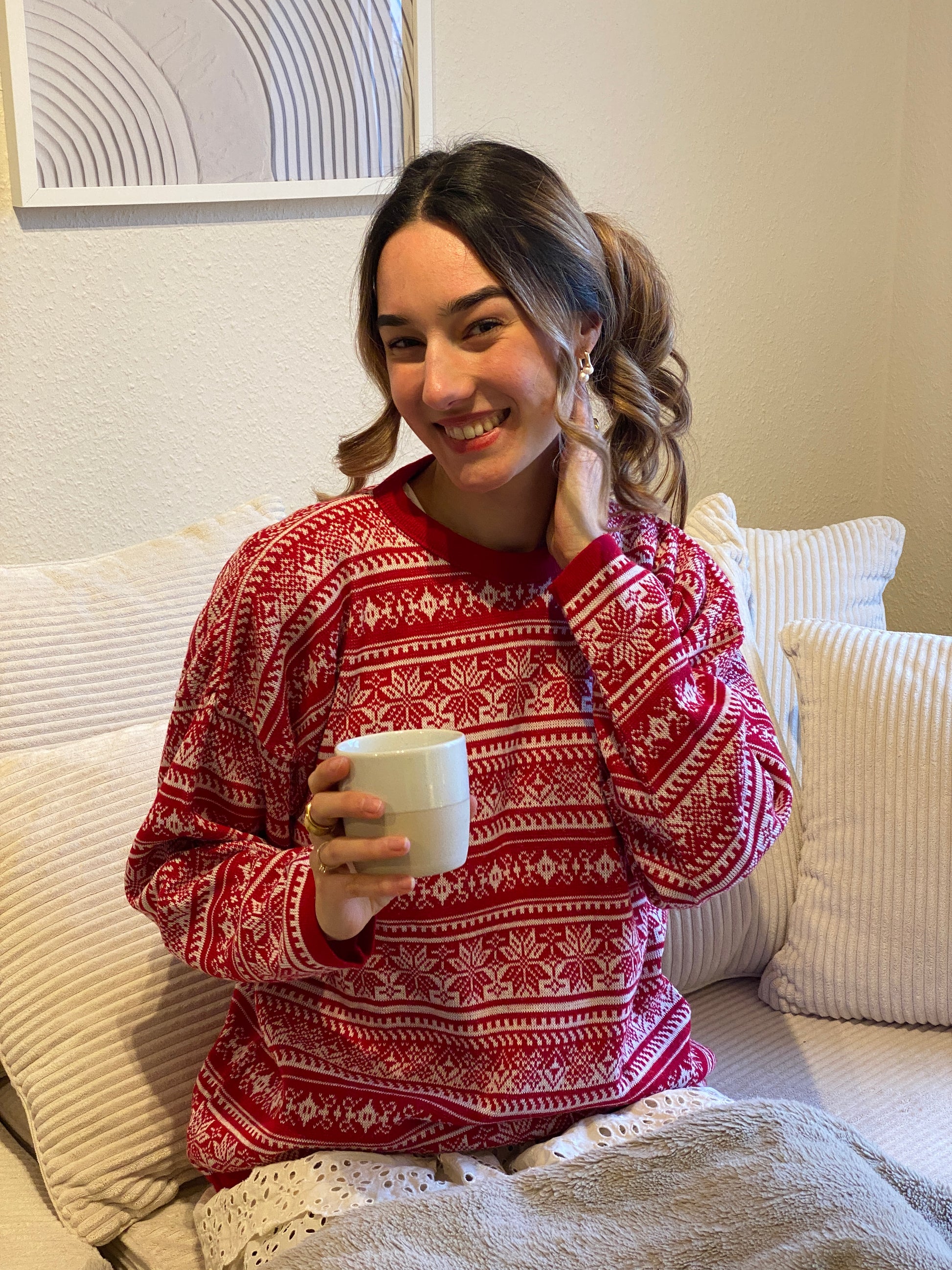 Winterlicher Retro Strickpullover in rot weiß gemustert, M